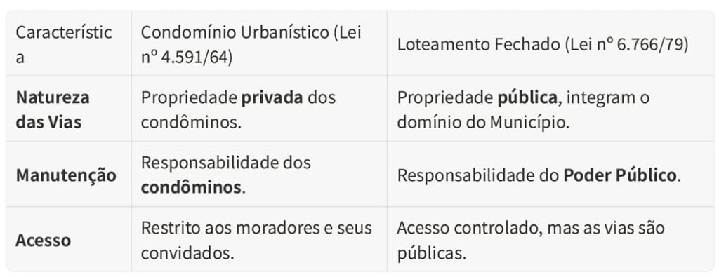 A empresa, por sua vez, recorreu da decisão, argumentando que o empreendimento era, na verdade, um condomínio urbanístico, e não um loteamento. A principal diferença, segundo a defesa, é que em um condomínio urbanístico as vias de circulação são de propriedade privada dos condôminos, não se aplicando a elas as mesmas regras de um logradouro público.